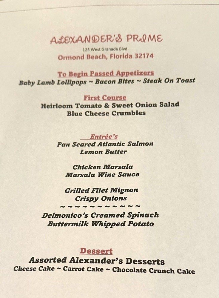 Located in Ormond Beach, FL, Alexanders offers a unique dining experience in a historic converted home. Specializing in American cuisine with a focus on steakhouses, Alexanders boasts a menu that caters to a variety of tastes. Customers rave about the exceptional service and atmosphere, with reviews praising the attentive staff and delicious food. From perfectly cooked filet mignons to mouth-watering scallop risottos, each dish is expertly prepared to tantalize your taste buds. The extensive drink selection and crafted cocktails further elevate the dining experience. Whether you are seeking a classic steakhouse meal or looking for a new culinary adventure, Alexanders is sure to leave a lasting impression. Make a reservation today to indulge in a fine dining experience that will keep you coming back for more.